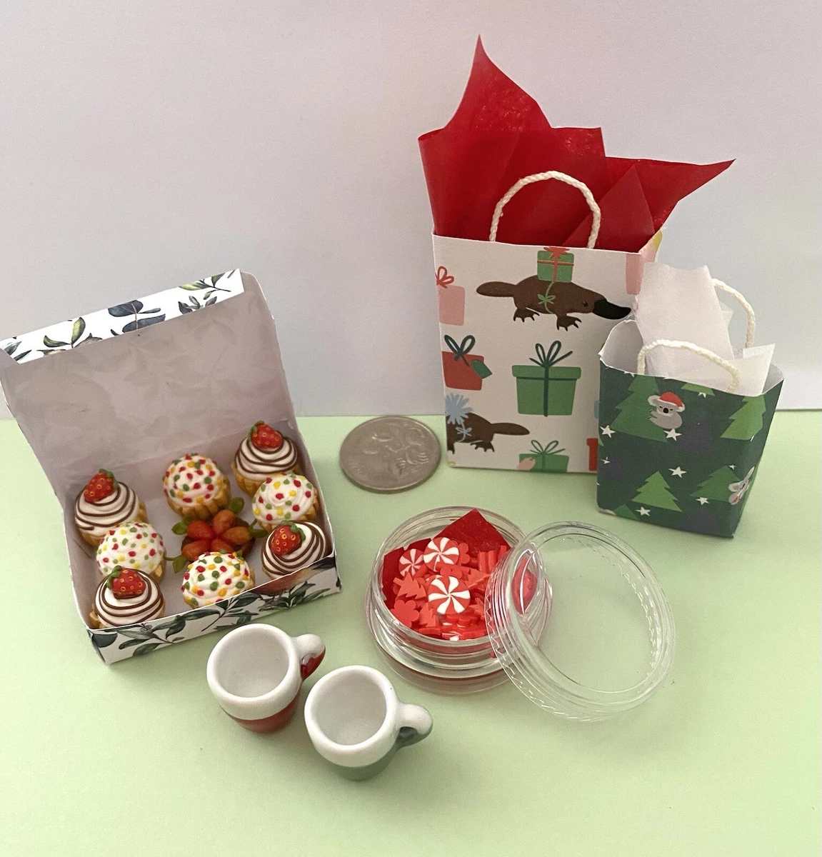 New Dolls Food Christmas Bags Cakes And Candy In Boxes 2 Mugs For Barbie Ebay